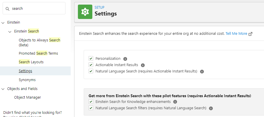 - Einstein Search is now on by default. It’s a great feature. I recommend using these optional settings: